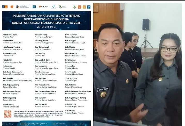 PRIORITAS, 19/09/25 (Tomohon) : Kota Tomohon di bawah pemerintahan Wali Kota Caroll Senduk dan Wakil Wali Kota Sendy Rumajar (Caroll -Sendy), menjadi satu-satunya daerah di Sulawesi Utara (Sulut) yang meraih penghargaan dari Universitas Gadjah Mada (UGM).