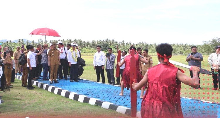 Dalam Prosesi penyambutan berlangsung meriah dan penuh sukacita dengan pengalungan bunga, secara Adat serta tarian tradisional khas Talaud sebagai penghormatan bagi tamu kehormatan yang datang.