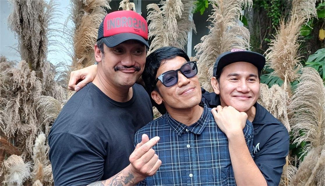 Desta di antara dua pemain lama “Warkop DKI Reborn”, Tora Sudiro dan Vino G. Bastian. (Courtesy: Kompas.com)