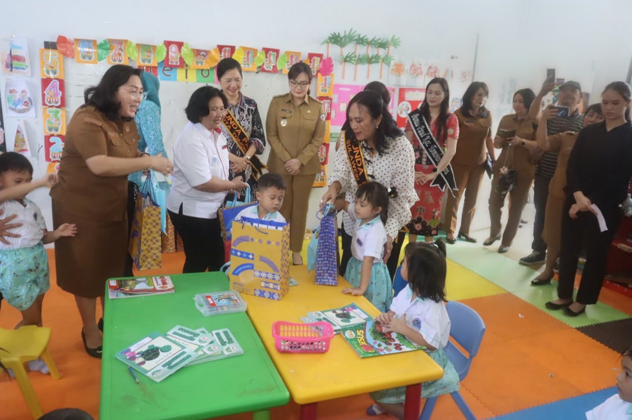 Bertempat di PAUD Happy Holy Kids Tomohon, Senin 13 Oktober 2025, dalam kunjungan ini Bunda Anik bersama Bunda Sendy dan Bunda Jeand’arc berinteraksi dengan anak-anak PAUD dengan menyapa, menyanyi dan bermain bersama.