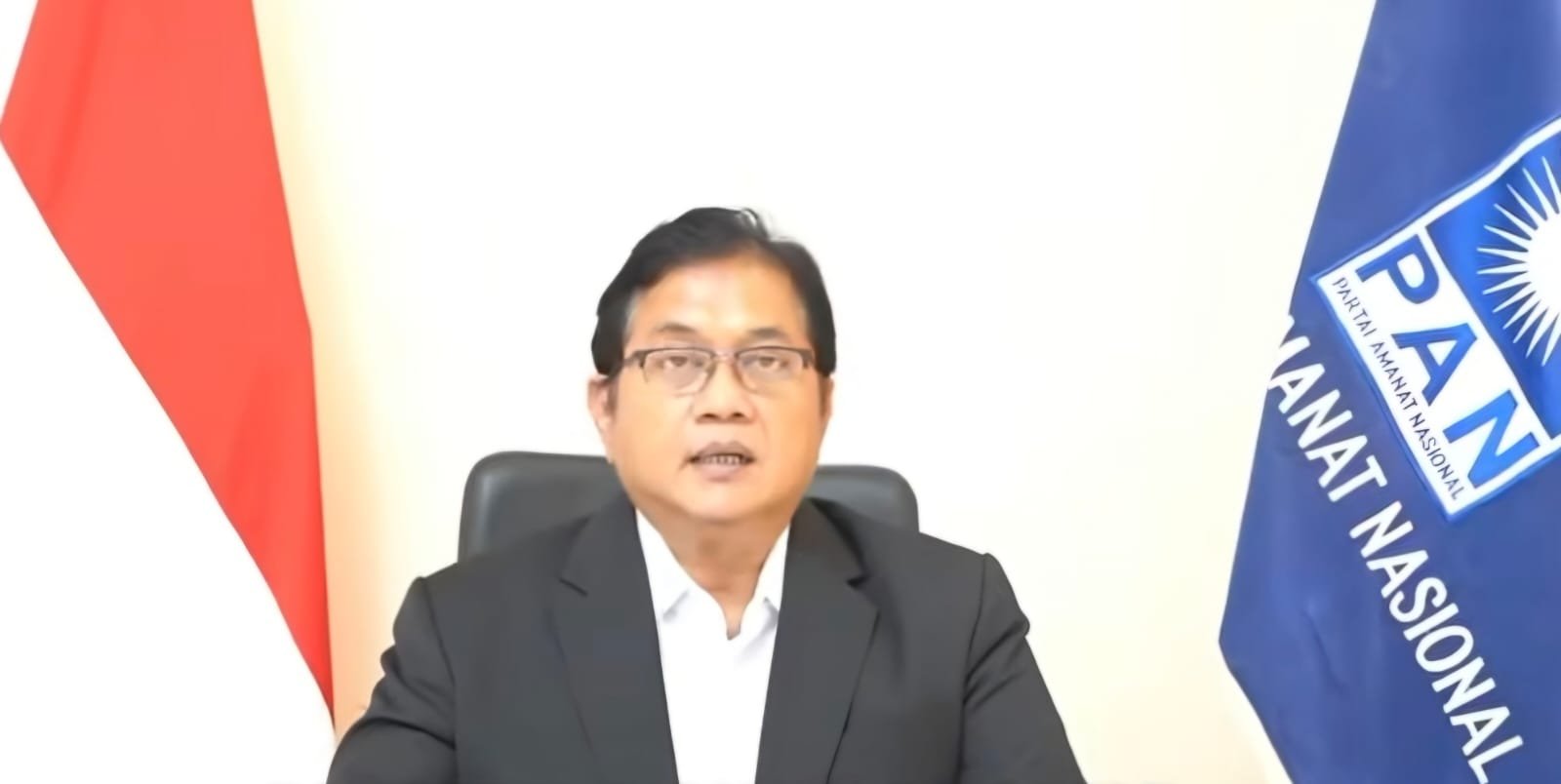 Waketum DPP PAN Viva Yoga Mauladi saat membacakan pernyataan pers tentang penonaktifan Eko Patrio dan Uya Kuya melalui video pada Minggu (31/8/25) siang. (Screenshot pan.or.id)