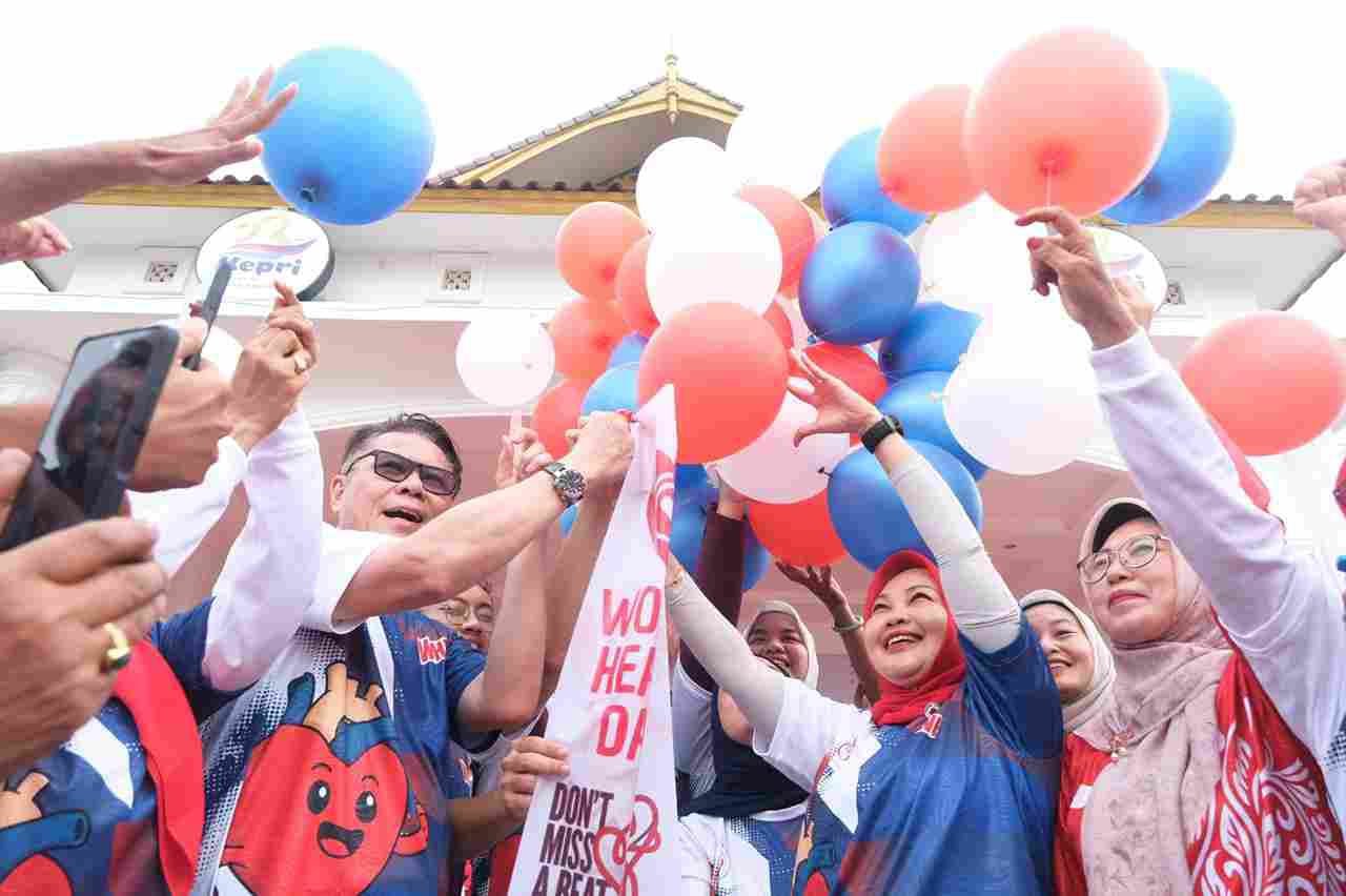 PRIORITAS, 20/10/2025 (Tanjungpinang, Kepri): Ketua Yayasan Jantung Indonesia (YJI) Provinsi Kepulauan Riau, Yuniarni Pustoko Weni, membuka secara resmi peringatan Hari Jantung Sedunia 2025 di Gedung Daerah Tanjungpinang, Minggu (19/10/25). Pembukaan ditandai dengan pelepasan balon ke udara sebagai simbol semangat hidup sehat.