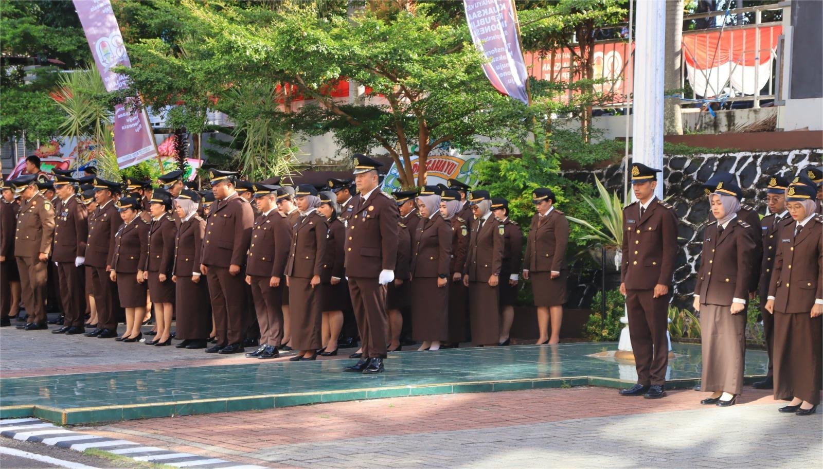 Peserta upacara memperingati Harlah ke-80 Kejaksaan di Kejati Sulut, Rabu (3/9/25). (Penkum Kejati Sulut)