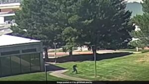 Tersangka penembak Charlie Kirk tertangkap kamera CCTV sempat berlari di halaman kampus usai turun dari atap bangunan. (ndtv)