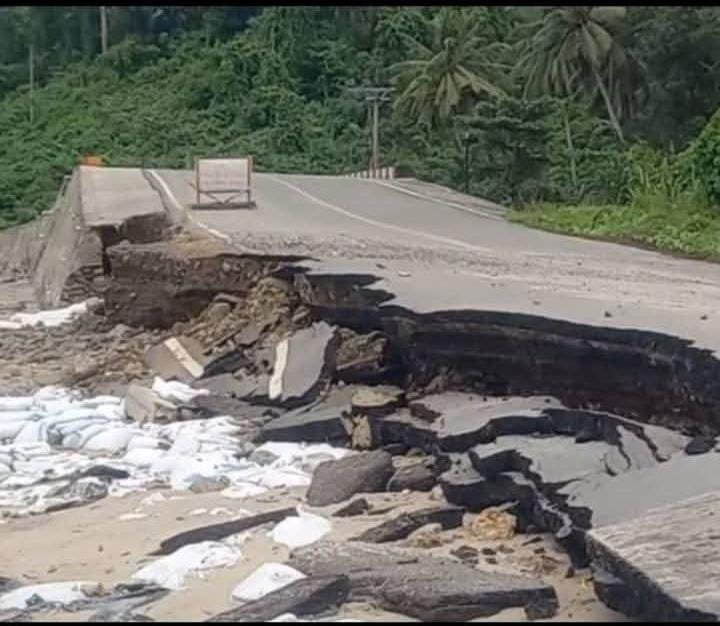 Jalan Trans Sulawesi Tolitoli–Buol di ruas Bajugan–Dongingis, ambruk dihantam abrasi ombak. (Ist.)PRIORITAS, 14/11/25 (Palu): Jalan Trans Sulawesi yang menghubungkan transportasi darat dua Kabupaten yakni Tolitoli dan Buol, Sulawesi Tengah (Sulteng), tepatnya di ruas Bajugan–Dongingis kini ambruk akibat abrasi. Hantaman abrasi gelombang pantai selama beberapa bulan terakhir menyebabkan sebagian badan jalan amblas dan talut penahan gelombang runtuh.