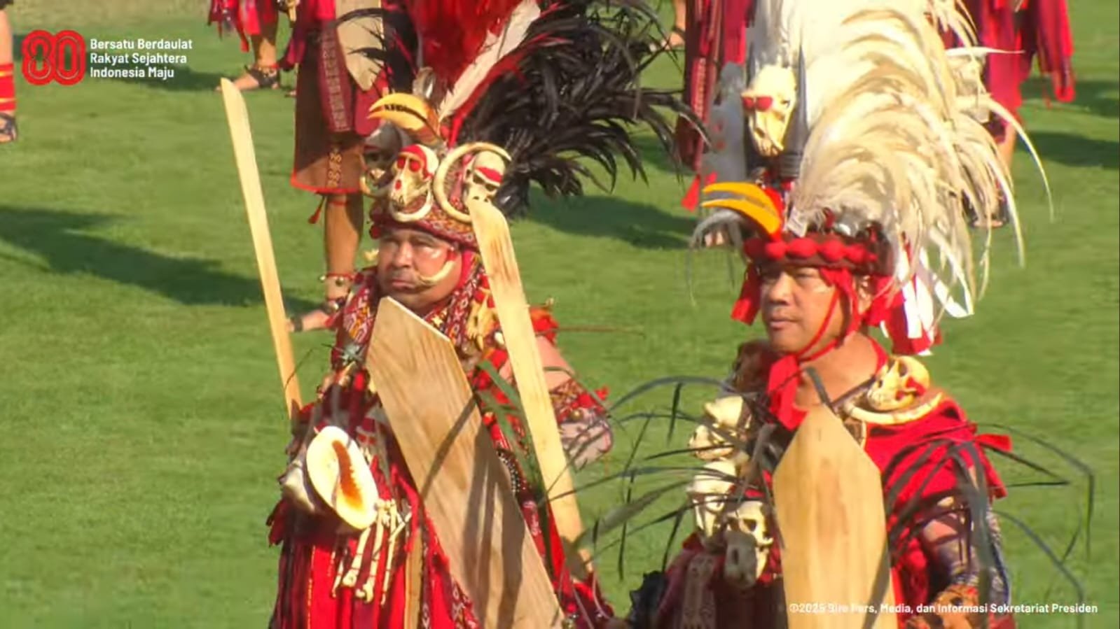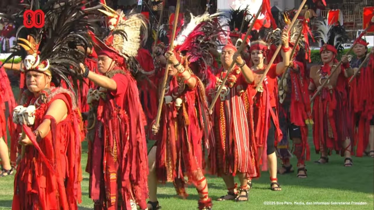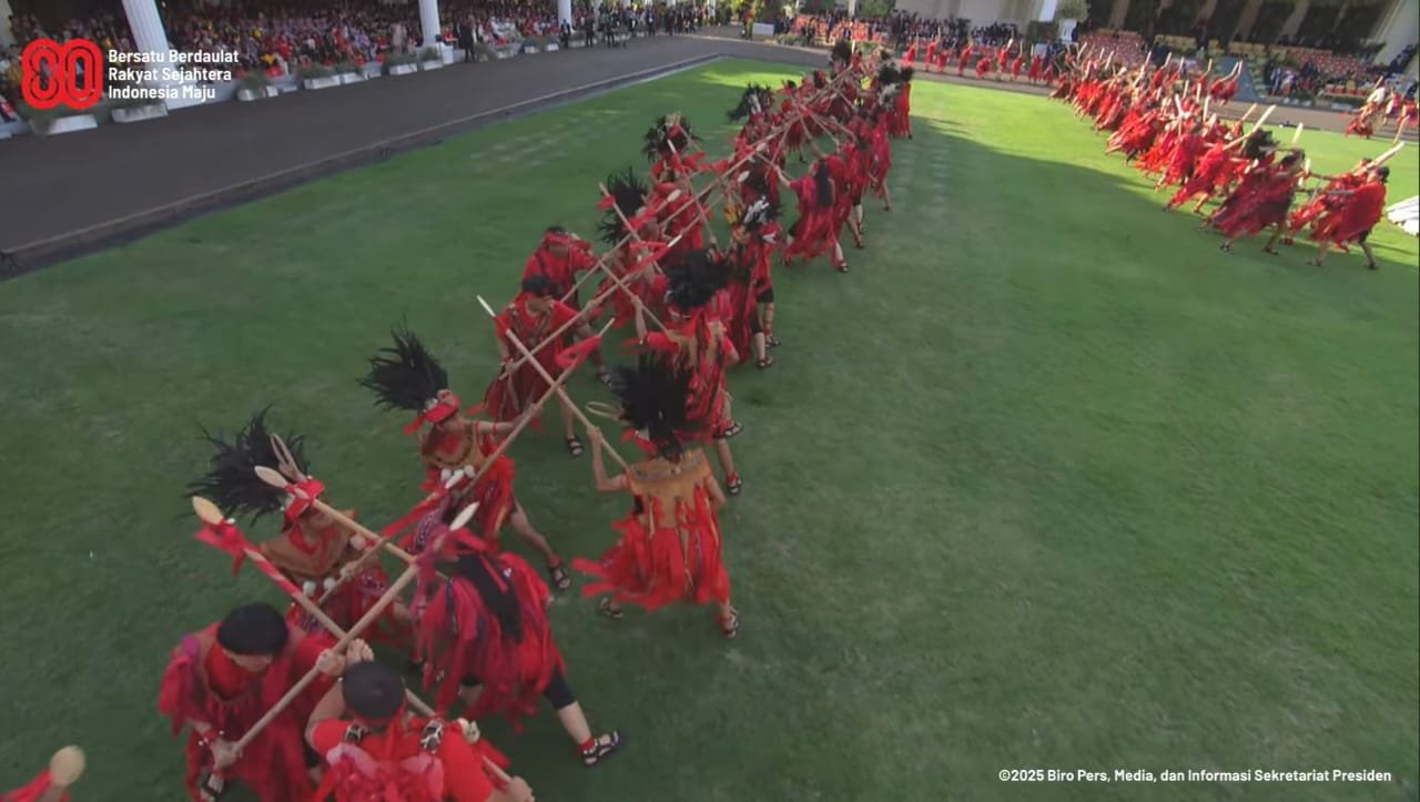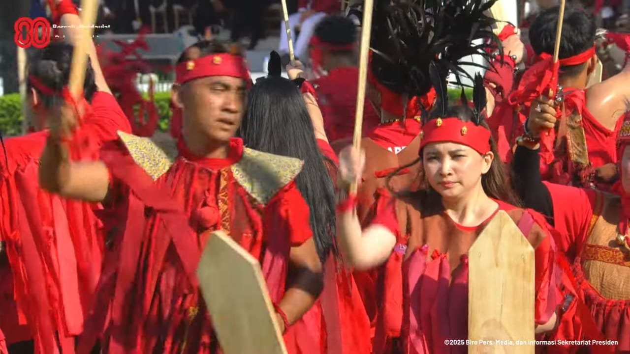 Tari Kabasaran tampil di Istana Merdeka Jakarta dalam rangkaian Upacara HUT Kemerdekaan ke-80 RI pada Minggu, 17 Agustus 2025. (Screenshot video BPMI Setpres)PRIORITAS, 17/8/25 (Jakarta): Tari perang asal Minahasa, Sulawesi Utara, “Kabasaran”, menjadi bahan pembicaraan ketika tampil dalam kegiatan kenegaraan Penurunan Bendera Merah Putih dalam rangkaian Upacara Hari Ulang Tahun (HUT) ke-80 Kemerdekaan Republik Indonesia. Kegiatan tersebut digelar Minggu, 17 Agustus 2025, petang di Istana Merdeka Jakarta.