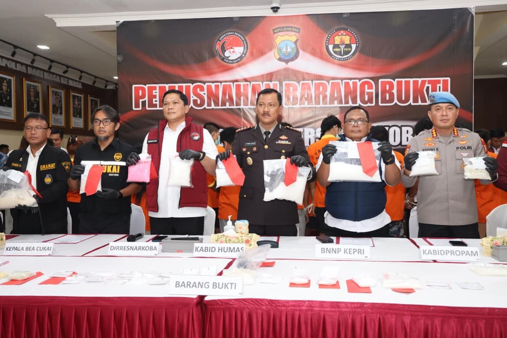 Kapolda Kepri Irjen Pol Asep Safrudin melalui Dirresnarkoba Kombes Pol Anggoro Wicaksono menegaskan para tersangka dijerat UU No. 35 Tahun 2009 tentang Narkotika dengan ancaman hukuman berat.