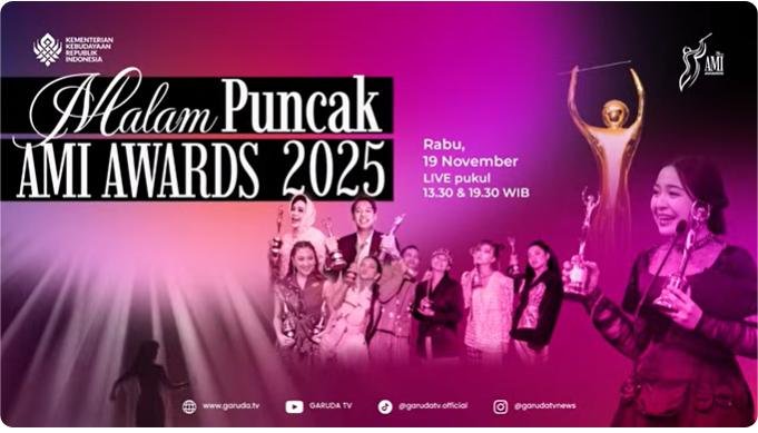 AMI Awards akan mengumumkan 63 kategori penghargaan dan 5 penghargaan khusus. Dalam puncak acara malam nanti, 13 kategori utama dan lima penghargaan khusus akan diserahkan langsung di atas panggung. (Dok. AMI Awards)PRIORITAS, 19/11/25 (Jakarta): Puncak acara Anugerah Musik Indonesia “AMI Awards 2025” digelar Rabu (19/11/25) malam ini, di Ciputra Artpreneur, Jakarta. Ajang penghargaan musik bergengsi ini disiarkan langsung Garuda TV pada pukul 19.30 WIB.