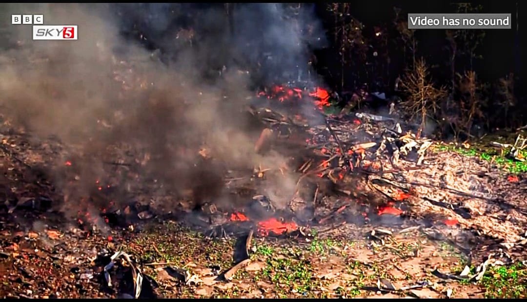 Dari rekaman udara yang beredar di sejumlah media sosial, menunjukkan lokasi puncak bukit perusahaan itu membara dan berasap, lapor BBC News.