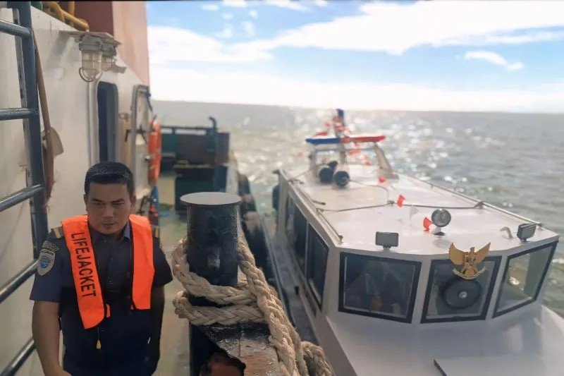 Pangkalan PLP Tanjung Uban evakuasi tongkang bocor di perairan Batam. (dok. PLP Tanjung Uban)PRIORITAS, 10/9/2025 (Bintan): Kantor Pangkalan Penjagaan Laut dan Pantai (PLP) Tanjung Uban mengevakuasi tongkang Bina Marine 80 yang mengalami kebocoran di Perairan Pulau Putri, Batam.