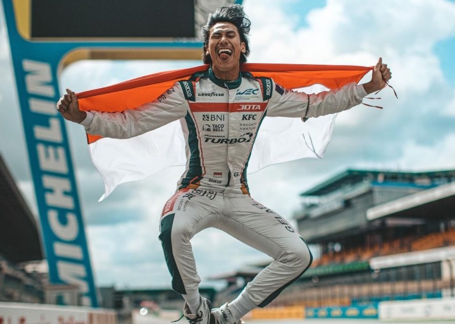 Salah satu momentum Sean Gelael sukses dalam ajang balap mobil internasional, saat Tim Jota yang didukungnya finis di podium kedua balapan ‘Le Mans 24 Hours’ 2021 di kelas LMP2. (Instagram @gelaelized)