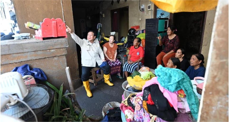Presiden Prabowo Subianto meninjau wilayah terdampak banjir di Kabupaten Badung, Provinsi Bali, pada Sabtu (13/9/25). (BPMI Setpres)PRIORITAS, 13/9/25 (Denpasar): Dengan menyusuri gang kecil yang masih penuh dengan lumpur, Presiden RI, Prabowo Subianto, banyak berhenti untuk menyapa sekaligus berbincang-bincang dengan para warga terdampak terkait kondisi keluarga dan rumah saat banjir terjadi.