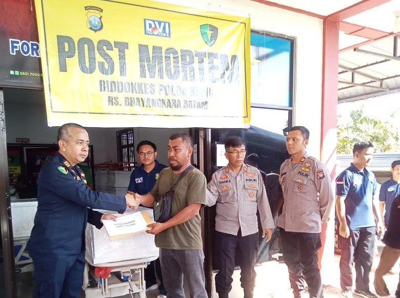 Penyerahan jenazah dipimpin Kabid Dokkes Polda Kepri Kombes Pol Drg. Muhammad Zakir, QHIA, bersama tim Dokpol, Forensik, dan personel Polresta Barelang. Turut hadir Kapolsek Batu Aji AKP Raden Bimo Dwi Lambang, serta jajaran medis dari RS Bhayangkara Batam.