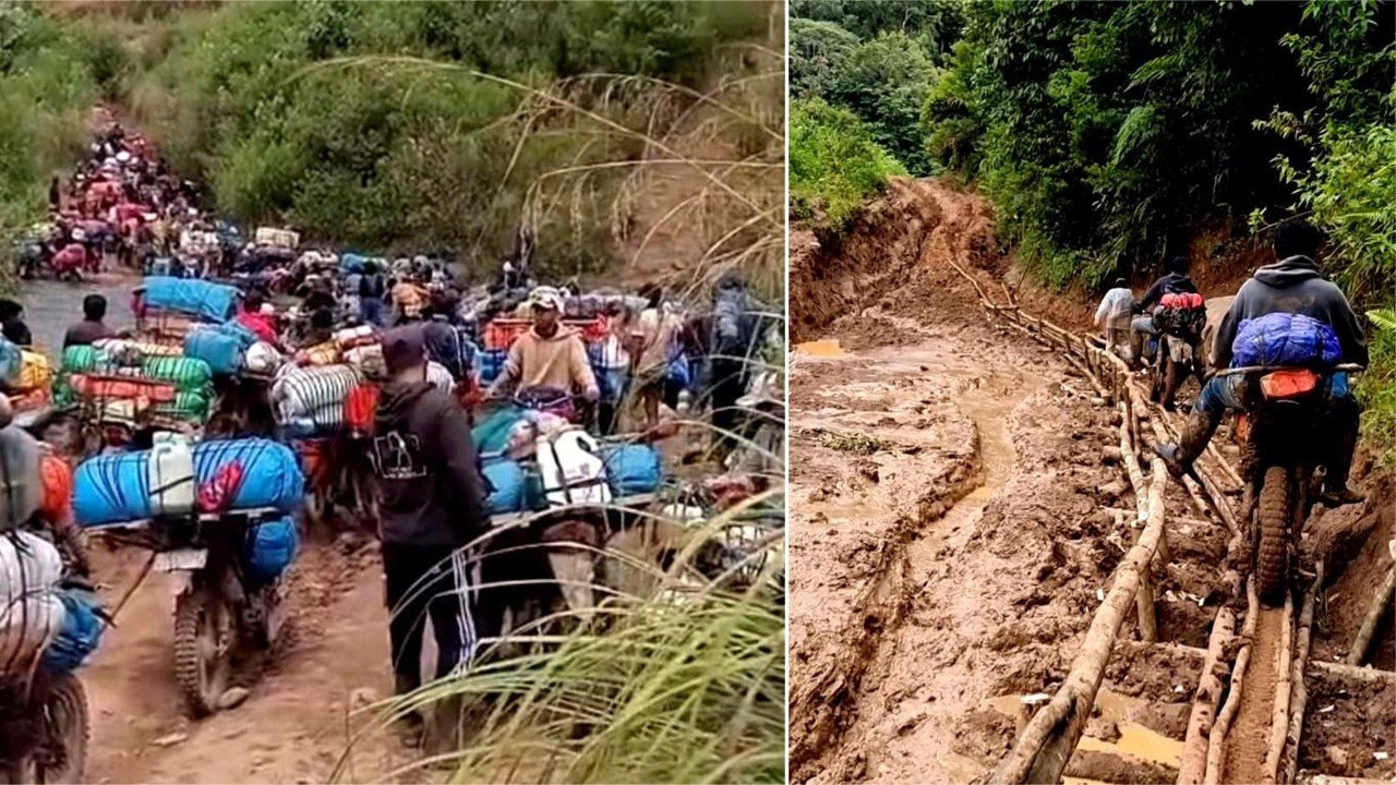 Dalam video yang beredar, terlihat ratusan warga menggunakan sepeda motor bermuatan berat berjuang menembus jalan berlumpur dan terjal sehingga menyulitkan masyarakat Seko membawa kebutuhan pokok maupun hasil bumi.