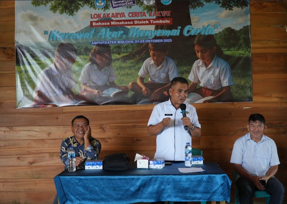 PRIORITAS, 2/10/5 (Tomohon): Upaya pelestarian bahasa dan tradisi lisan Minahasa terus mendapat perhatian. Sanggar Kamang Wangko Woloan menggelar Lokakarya Cerita Rakyat Minahasa Dialek Tombulu di Amphitheater Woloan, Rabu (1/10). Kegiatan ini menjadi bagian dari rangkaian Lokakarya dan Lomba Cerita Rakyat Minahasa Dialek Tombulu dengan tema “Merawat Akar, Menyemai Cerita.”