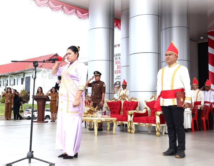 Wakil Bupati Kabupaten Kepulauan Talaud, Anisya Gretsya Bambungan, SE, bertindak sebagai Inspektur Upacara, sekaligus membacakan pidato resmi Menteri Pemuda dan Olahraga Republik Indonesia, Erick Thohir.